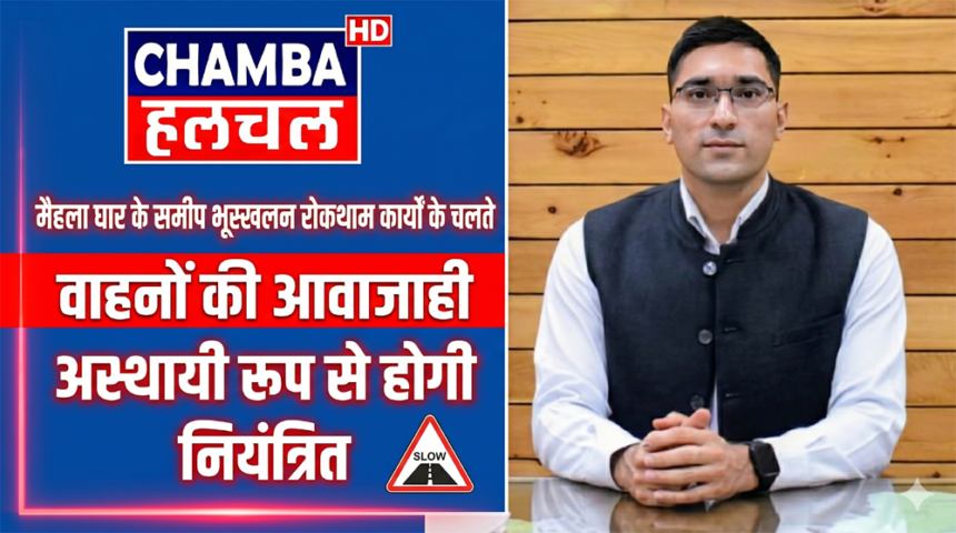 चंबा, 23 अप्रैल 2026 : जिला दंडाधिकारी मुकेश रेपसवाल ने राष्ट्रीय उच्च मार्ग-154ए चक्की-चंबा-भरमौर मार्ग के अंतर्गत मैहला घार में जारी भूस्खलन रोकथाम (लैंडस्लाइड मिटिगेशन) कार्यों के दृष्टिगत जनहित एवं सुरक्षा को ध्यान में रखते हुए 31 मई तक वाहनों की आवाजाही को अस्थायी रूप से नियंत्रित करने के आदेश जारी किए हैं। जिला दंडाधिकारी द्वारा मोटर वाहन अधिनियम, 1988 की धारा 115 के अंतर्गत प्रदत्त शक्तियों का प्रयोग करते हुए 31 मई 2026 तक प्रतिदिन प्रातः 6 बजे से सायं 6 बजे तक कार्य के दौरान आवश्यकता अनुसार प्रति घंटे 25 से 30 मिनट तक वाहनों की आवाजाही को अस्थायी रूप से रोककर (होल्ड कर) यातायात नियंत्रित करने के आदेश जारी किए गए हैं।